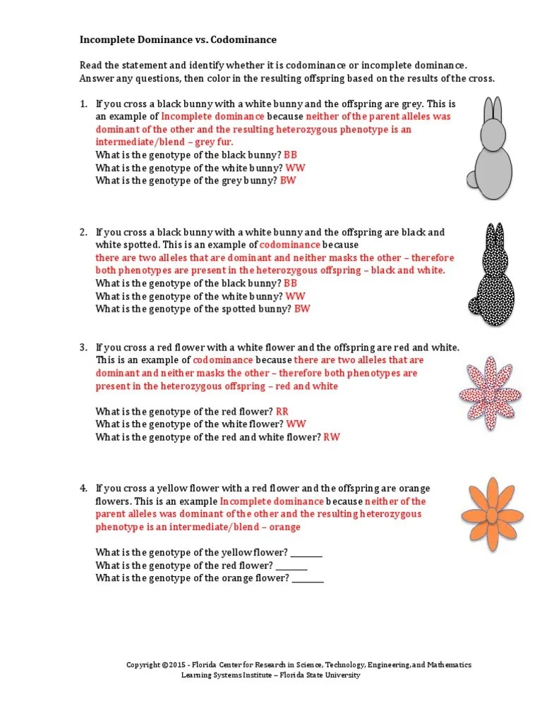 Codominance And Incomplete Dominance Worksheet Answer Key : Explain The Difference Between Incomplete Dominance And Codominance Course Hero -. In fact, some heterozygous genotypes allow both alleles to partially show by blending together how they are expressed; Codominant/incomplete dominance practice worksheet 1. A) eggplants can be deep purple, . Punnett squares to making genotype keys for a particular trait. Download link on slide 5 page 1 2.